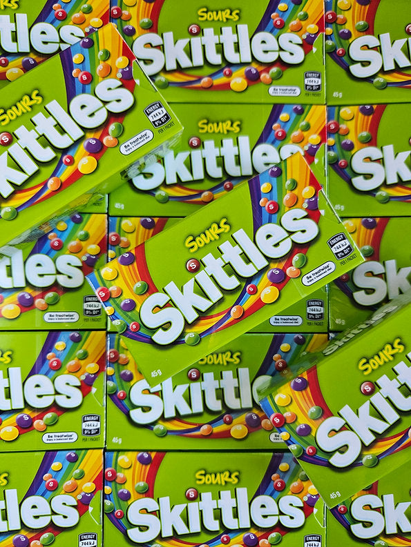 Sugar, Glucose Syrup, Vegetable Fat (Contains Soy), Food Acids (330, 296, 331), Thickeners (1400, 1405, 1412, 1450), Colours (102, 129, 110, 132, 133, 171), Flavours, Glazing Agent (903), Vegetable Oil