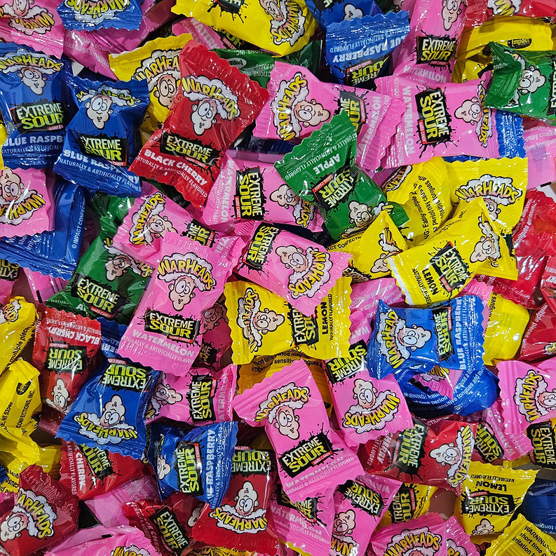 Each assorted pack contains 6 pieces of Warheads Extreme Sour Hard Candy that come in various flavours (Lemon, Black Cherry, Apple, Blue Raspberry, Watermelon).